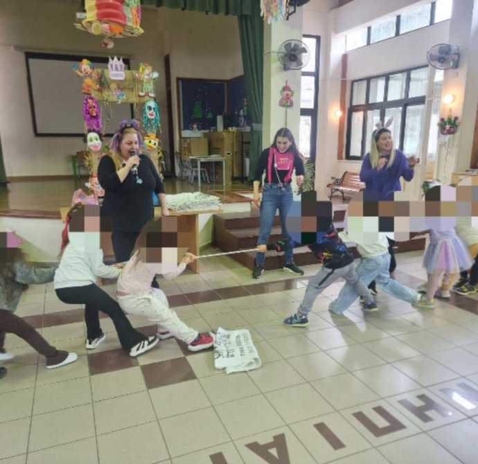 Τα παιδιά διασκέδασαν, χόρεψαν σε ρυθμούς καρναβαλιού και φυσικά έπαιξαν τα γνωστά παραδοσιακά παιχνίδια όπως αυγουλοδρομίες, σακουλοδρομίες, σχοινί, το μαντήλι κ.ά.