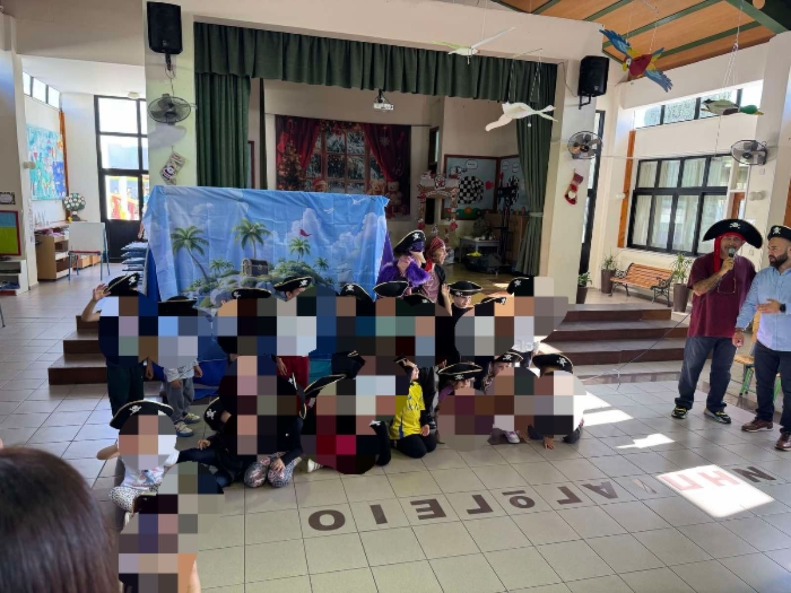 Την Παρασκευή 14 Νοεμβρίου παιδιά και γονείς του Νηπιαγωγείου μας είχαν την ευκαιρία να συμμετέχουν στο μουσικοκινητικό δρώμενο «Οι πειρατές της Χαράς». Οι δραστηριότητες είχαν εκπαιδευτικό, κοινωνικό και ψυχαγωγικό χαρακτήρα και στηρίχθηκαν σε εμψυχωτικά βιωματικά παιχνίδια με την καθοδήγηση του Εμψυχωτή – Παιδαγωγού Φιλιππάκη Μανόλη.